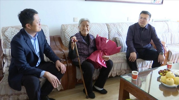 陳卓與老人及其家屬親切交談,詳細詢問老人的身體狀況、生活起居和飲食情況,并送上了精心準備的鮮花和慰問金。