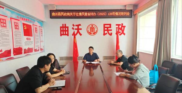 6月5日,曲沃縣民政局召開關(guān)于社情民意省轉(zhuǎn)辦〔2025〕136號(hào)情況研判會(huì)。旨在切實(shí)解決群眾訴求,強(qiáng)化民生保障工作。曲沃縣民政局黨組書記、局長丁磊,黨組成員、副局長張軍良,城鄉(xiāng)居民最低生活保障中心主任王琪,曲沃縣史村鎮(zhèn)便民服務(wù)中心主任陳敏等相關(guān)工作人員參會(huì)。