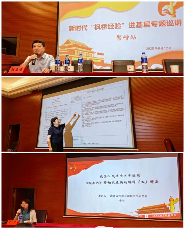 培訓過程中,山西省調解協會會長陳廷剛、山西調解學院院長郝曉玲、山西省政法管理干部學院法學碩士李寧三位專家結合豐富的實踐案例,深入淺出地系統講解了新時代調解工作的先進理念、實用方法與創新路徑。從調解卷宗的規范要求到文書制作的細節要點,從《民法典婚姻家庭編司法解釋二》的解讀到新時代“楓橋經驗”在基層的精準應用,專家們的講解全面且細致,將新時代“楓橋經驗”的精髓與方法毫無保留地傳遞到基層一線。參訓人員紛紛表示,通過此次培訓,不僅拓寬了視野,更提升了化解矛盾、服務群眾的實際能力。
